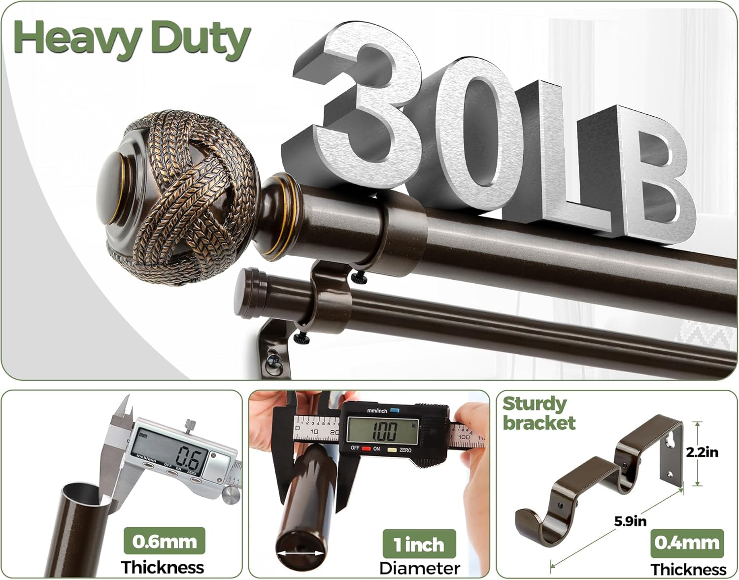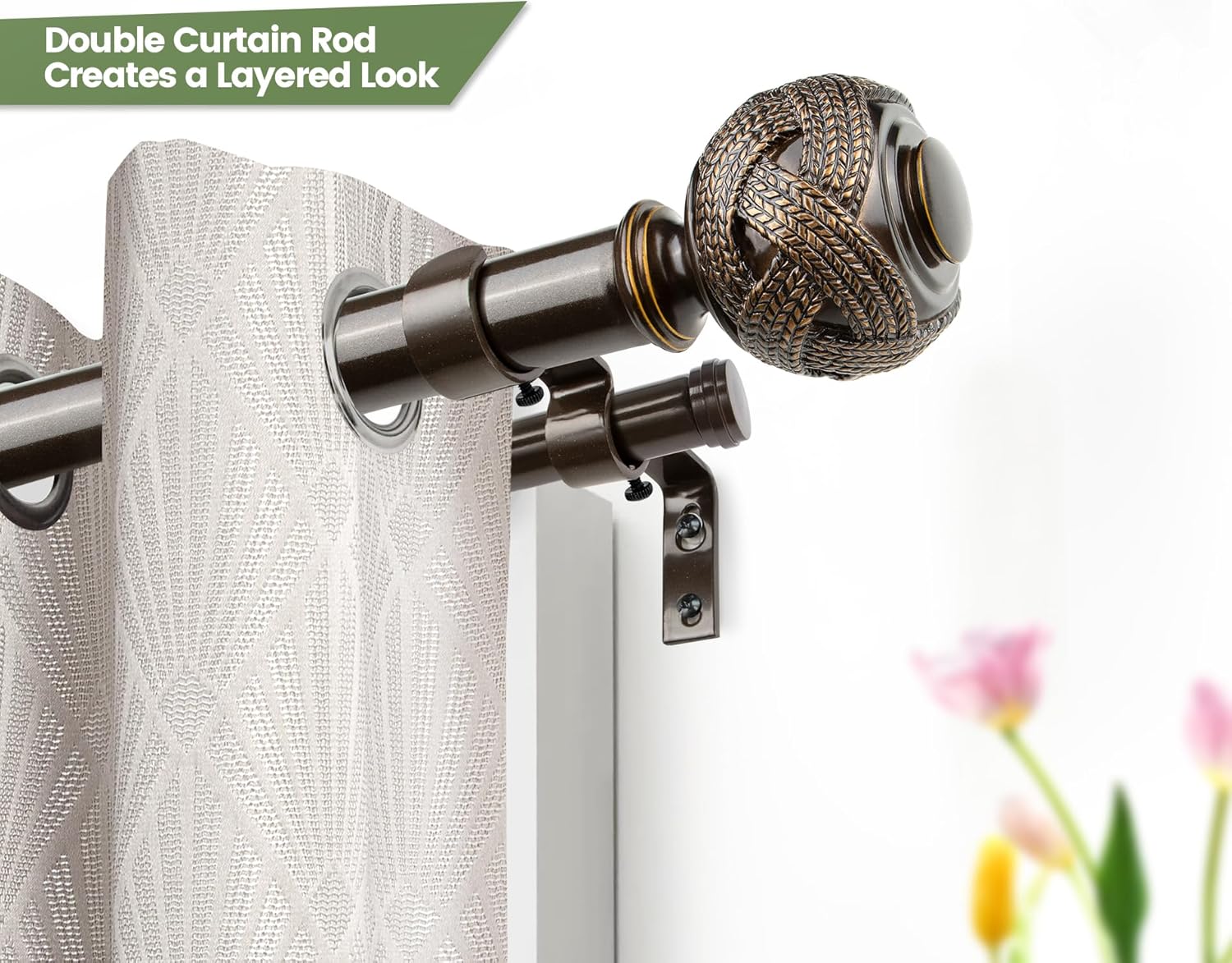 SPEACIAL WOVEN PATTERN FINIAL: Definitely you were attracted by the ornamental woven pattern knob which is made of natural resin. This decotative curtain rod perfectly matches various home styles (simple, retro, modern, rustic, contemporary etc.).