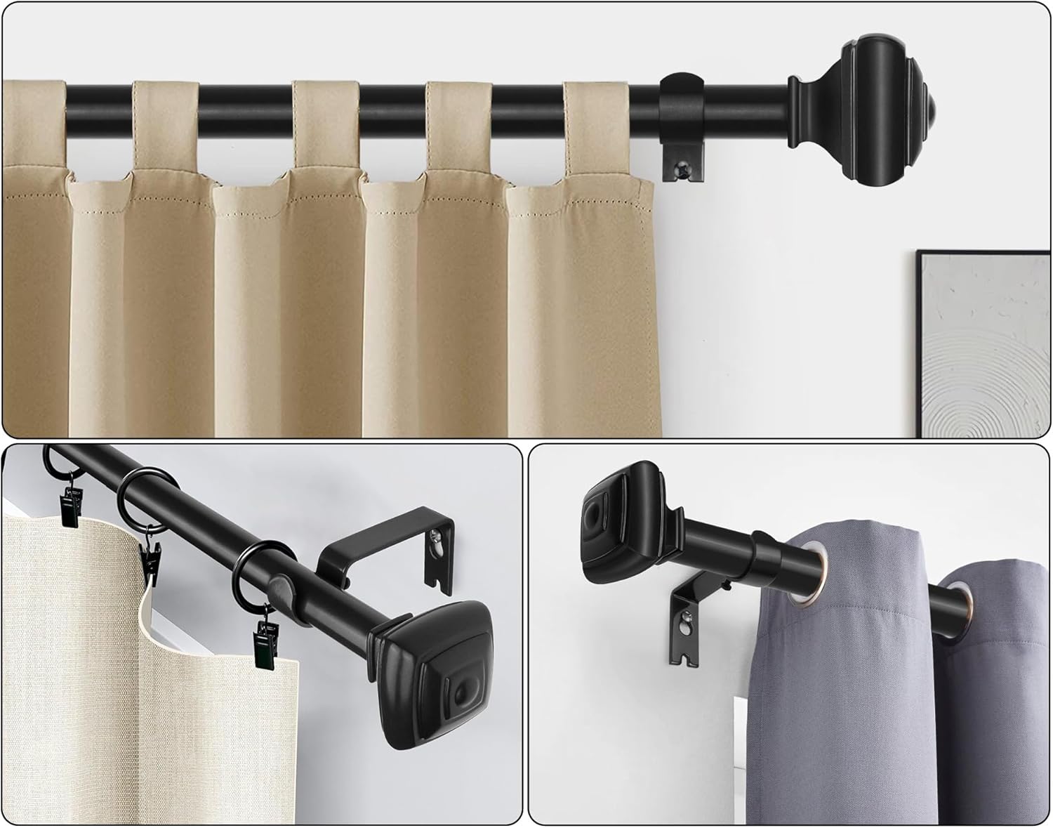 - šš®š¢šš¤ & ššš¬š¬š„š-š š«šš šš§š¬ššš„š„ššš¢šØš§: 48''-84'' curtain rod package Includes 16'' rod*6 (3/4'' telescopic rod*1, 7/8'' fixed rod*5), 2 finials, 3 brackets, 6 screws, 6 anchors and 1 instruction. You can easily mount single rod in a few steps and minutes.