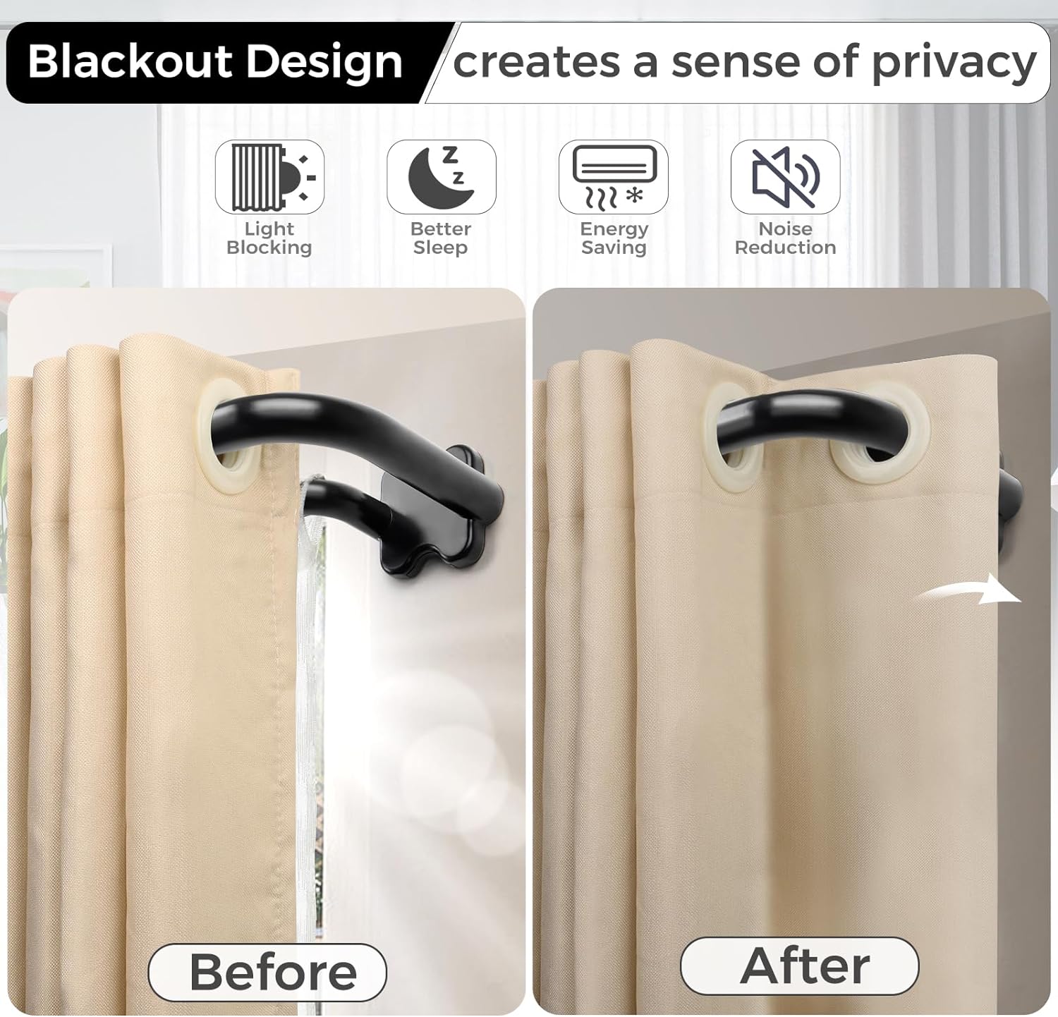 - Room Darkening Curtain Rod: By creating a window curtain rod that curves at both ends, the dual rods with wrap around design that effectively blocks out all light and enhances privacy.