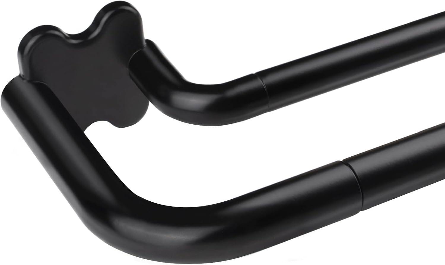Black Double Curtain Rods, USFOOK Blackout Wrap Around Curtain Rods for Windows 32 to 58 Inch, 6/8 Inch Room Darkening Curtain Rod