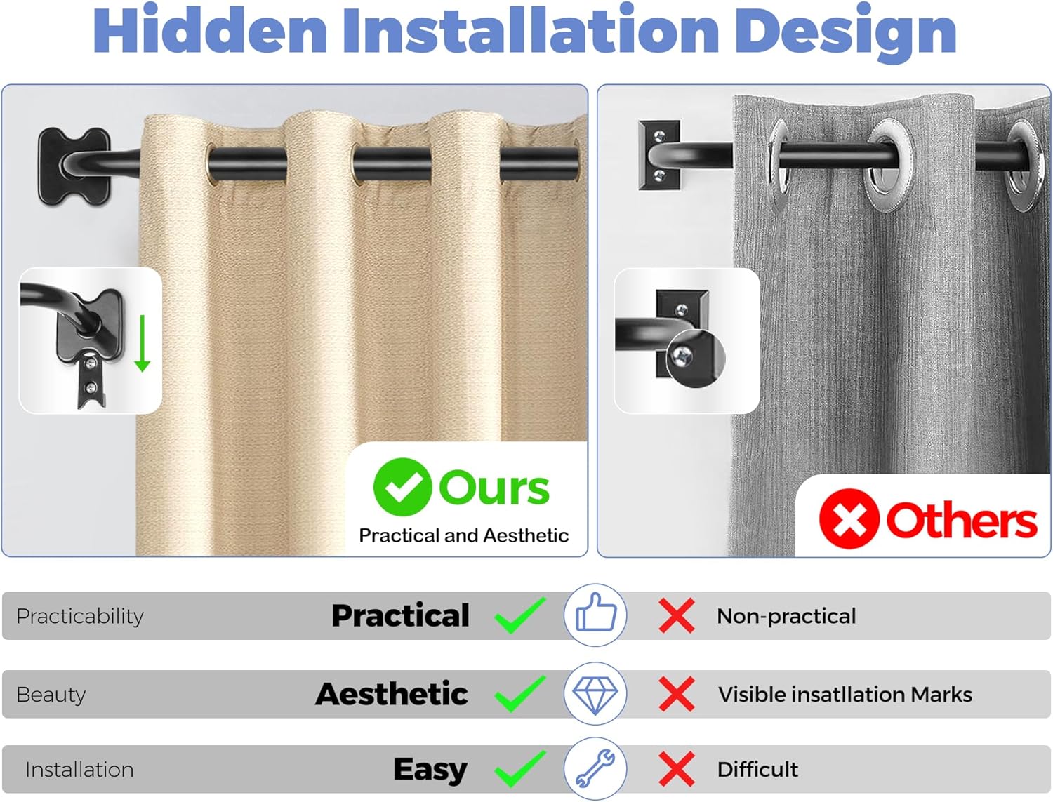 - Hidden Installation Base: No need to install any brackets. Just insert the pre-assembled wrap around curtain rod after placing the base to seamlessly hide it. This elegant design leaves no visible installation marks and complements a modern aesthetic flawlessly
